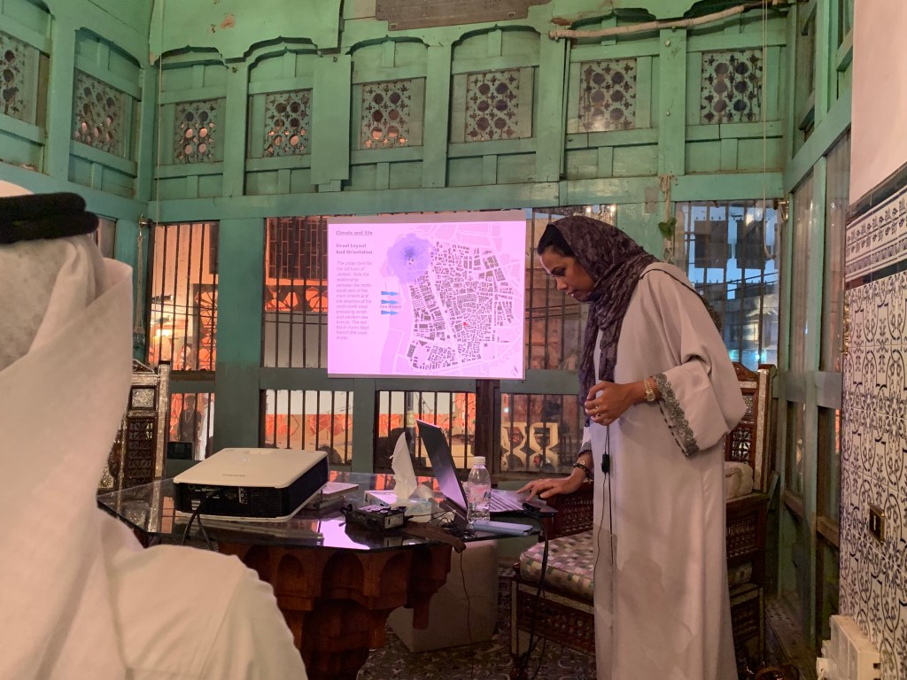 As one of Jeddah season’s activities in 2019. Cultural nights were held at Albalad – historical Jeddah ─ taking various creative disciplines into account such as art, architecture, theatre and music. The interesting coincidence is the talk was about sustainable architecture of Nassief house and it was hosted inside Nassief House by Dr. Noura Ghabra.